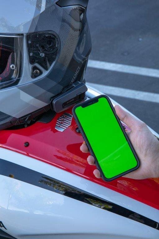 nutno mít v mobilním telefonu nainstalovanou Cardo Connect App a zaregistrovaný interkom